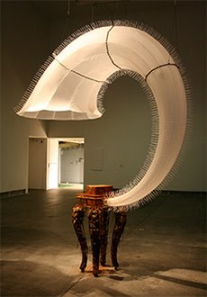 What is contemporary craft? Craft theory from the late nineteenth century and throughout the twentieth century valued the artisan’s hand over the work of the machine. Thus, historically, the artisan has represented an important social virtue. The New Materiality: Digital Dialogues at the Boundaries of Contemporary Craft presents the work of sixteen emerging and established American craft artists who blend traditional craft materials such as fabric, glass, wood, metal, and clay with digital technologies and, in turn, blur the boundaries between the traditionally established categories of craft, art, and design. Works in the exhibition range from an eleven-foot portrait of Madam CJ Walker made out of combs to glass reliquaries containing videos of extinct objects such as encyclopedias and typewriters. One of the largest pieces, Donald Fortescue and Lawrence LaBianca’s Sounding (2008), explores the relationship between not only craft, art, and design, but also technology and nature. Inspired by Herman Melville’s Moby Dick, the artists lowered a cabriole-legged table into the ocean, together with a hydrophone to record the ambient sound, and kept it there for two months. The work is exhibited with an oversized hornlike funnel, tied together with zip ties, to amplify the recorded sound. ”The New Materiality shows us that the lines between art, design, and craft are becoming more porous as each co-opts various theoretical, technical, and philosophical aspects of the other, asking us to scrutinize the distance between them in contemporary creative practice,“ said Fo Wilson, University of Wisconsin-Milwaukee professor and curator of The New Materiality. Also represented in the exhibition are Brian Boldon, Shaun Bullens, Sonya Clark, Lia Cook, E.G. Crichton, Maaike Evers, Wendy Maruyama, Christy Matson, Cat Mazza, Nathalie Miebach, Mike Simonian, Tim Tate, Susan Working, and Mark Zirpel. The New Materiality: Digital Dialogues at the Boundaries of Contemporary Craft is organized by the Fuller Craft Museum and is organized at the Milwaukee Art Museum by the Chipstone Foundation. It is curated by Fo Wilson, assistant professor in the Department of Art and Design at the University of Wisconsin-Milwaukee.