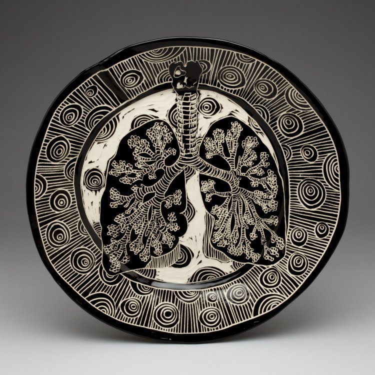I really just want my work to bring a smile to people. I started doing the organs and muscles due to my lack of knowledge of my own insides and keen interest in learning more after finding out I had only one kidney and a big cyst and not really knowing what either looked like. The little characters are really just for fun, often revealing my current relationship with my husband and 2 dogs.