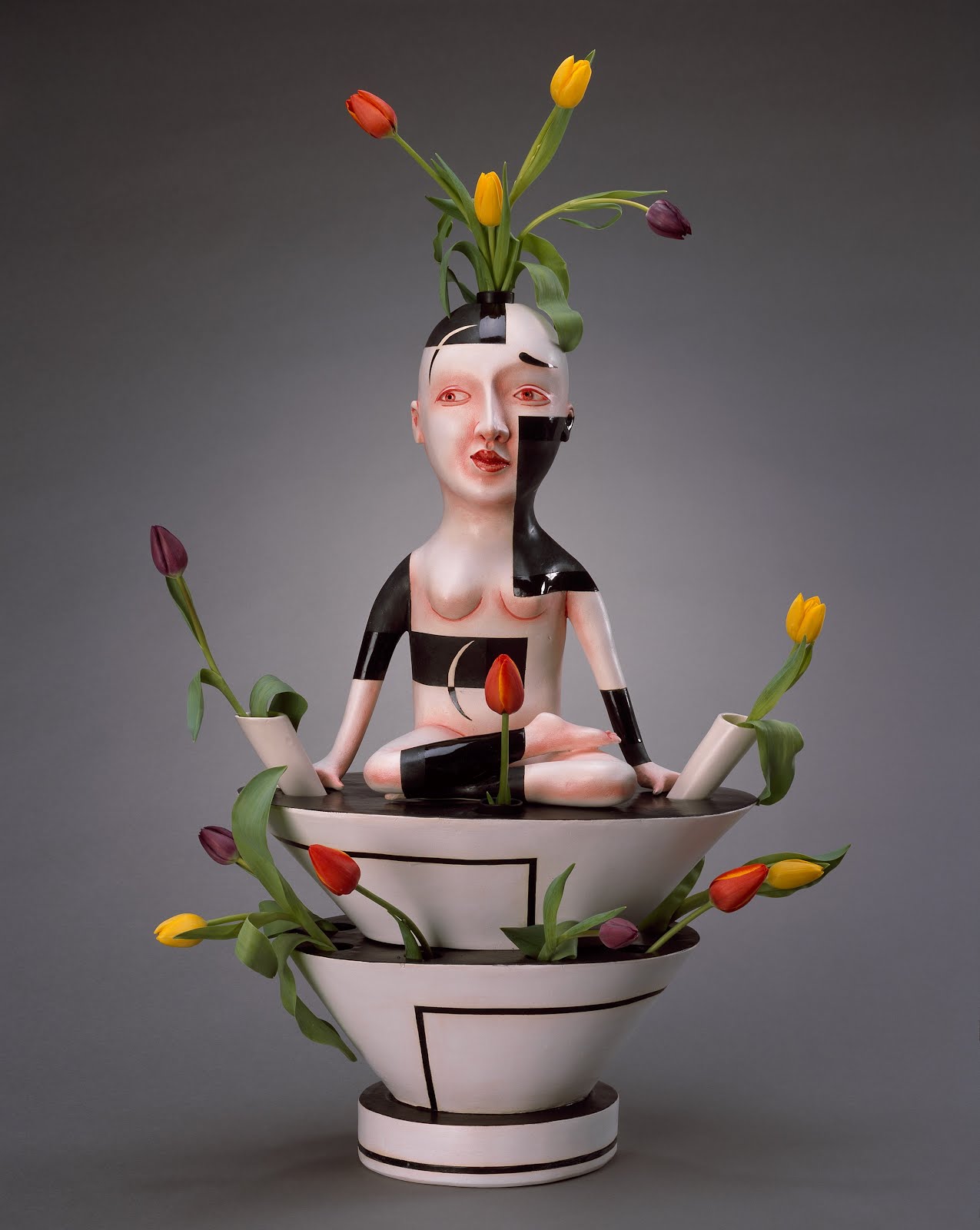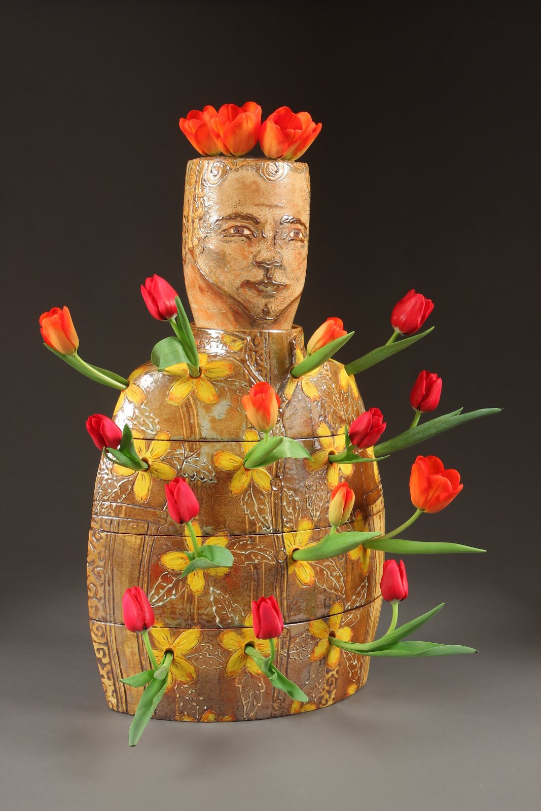 In 1637 Tulip Mania reached its peak in the Netherlands with tulip bulbs trading for astronomical prices. It was there in the 17th century in the Delft Potteries of the Netherlands that the tulip vase was born. Originally a 17th century Delft stacking form with multiple openings for displaying tulips. The Skagit Valley to the north of Seattle rivals Holland in its tulip growing fame and it is there at the Museum of Northwest Art in La Conner that ceramic artists will revisit this unique vessel form. Tulipiers or Tulip Vases , as a form, present a unique challenge and creative opportunity for ceramists. Carol Gouthro, guest curator and ceramist , invited 32 northwest ceramic artists to create Tulipiers in their own style.
