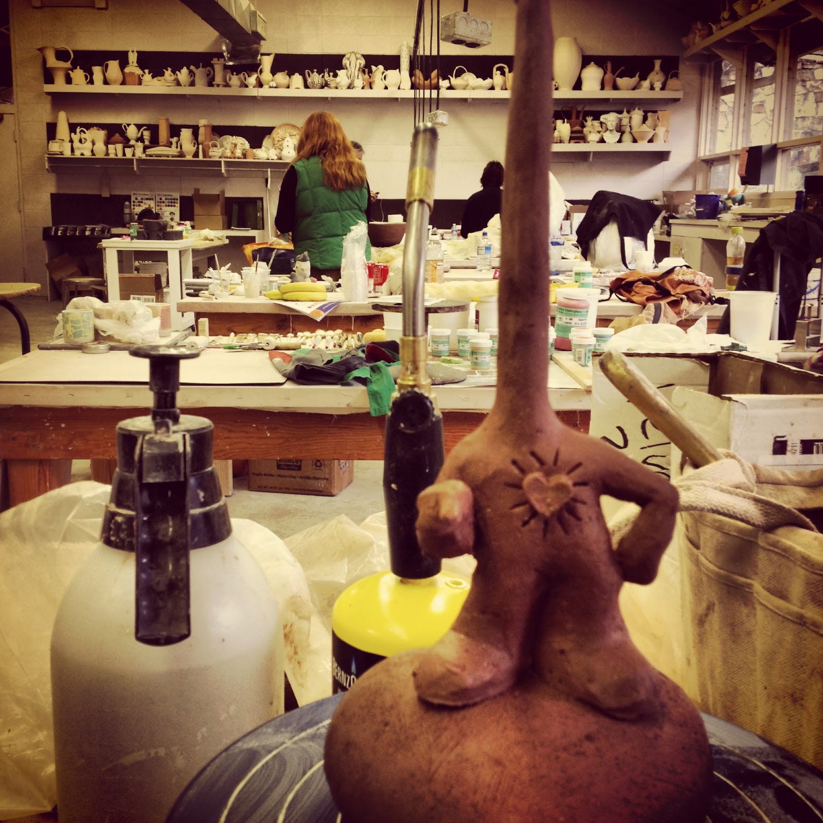 A little on why I’m here: Early last year I received one of those emails that makes you giddy and uncontrollably dance happily around your kitchen (hopefully only for you to see). Jason Burnett, one of my current favorite contemporary potters contacted me regarding The Ceramic Surface Forum, which is a week long forum in it’s second year. Its an initiative that Jason pitched to Arrowmont and which Arrowmont eagerly supported, and somehow, just somehow I got on the ceramic gods good side and was invited to participate this year. I’ll be posting images of the other artists work over the next few days and will get around to posting links to all of their websites right away as well. For me this was the perfect way to start off my year. Last year was a blur, a baby, some sales, a move, who knows what else. And at the end of it all i was shocked to realize that a year had gone by without me having made even one new figurative sculpture. What?! I know. Embarrassing. That part of my brain had given itself up to the survival mode of parenting and craft sales. But in the fall I had applied for a grant with the Saskatchewan Arts Board which I recently found out I had received. This grant would financially support this residency as well as a research based trip to Los Angeles later this spring (more on that another time) and the production of a new body of figurative work.