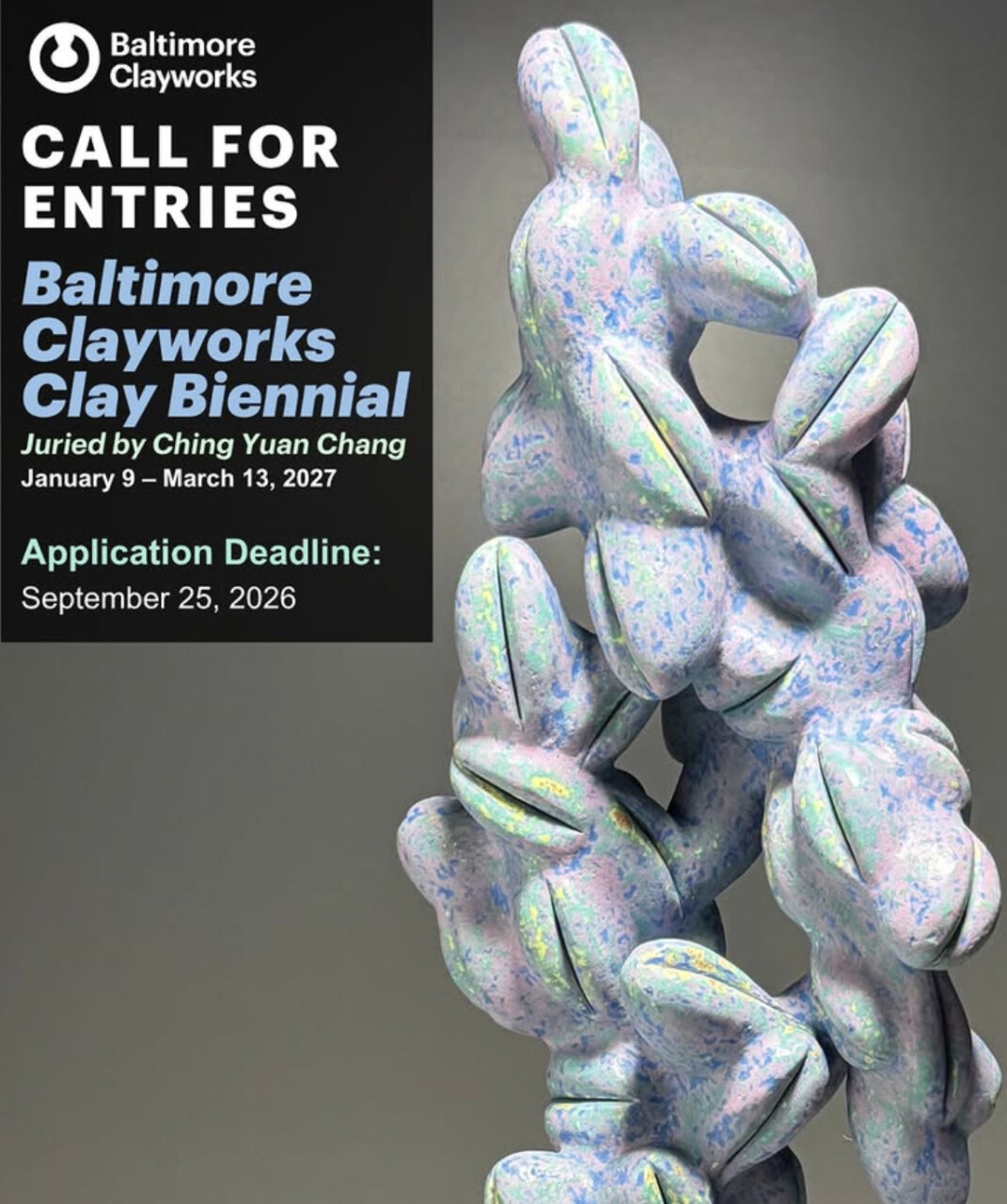 Juried by Ching Yuan Chang @chingyuan.chang . “Baltimore Clayworks Clay Biennial” is a national juried exhibition presented in conjunction with the 61st Conference of the National Council on Education for the Ceramic Arts (NCECA), that celebrates the vitality, diversity, and evolving language of contemporary ceramics. Open to ceramic artists working in all styles, techniques, and conceptual approaches, the exhibition seeks work that reflects both technical excellence and compelling artistic vision. Functional, sculptural, installation-based, and experimental works are all welcome.
