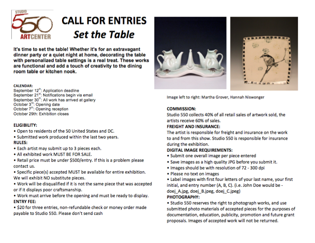 call for entry: Set the Table @ Studio 550